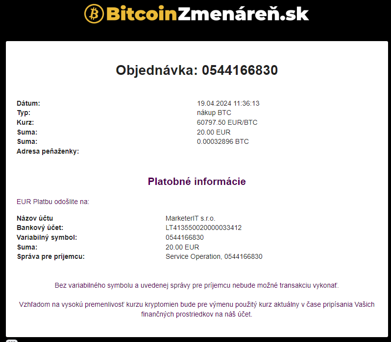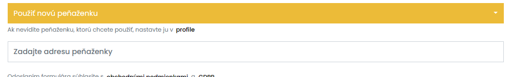 4. Vyberiete si na akú peňaženku bude kryptomena zaslaná. Buď na internú peňaženku na Bitcoinzmenárni alebo na vlastnú, kde zadáte jej adresu. Pokiaľ ste si ju vyplnili v profile, tak sa Vám ukáže pri voľbe.