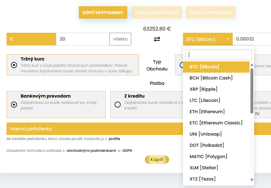Pár jednoduchých klikov ako nakúpiť kryptomenu.