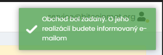 5. Kliknete na " kúpiť". Obchod bude týmto zrealizovaný a bude aj oznámený správou v oznamovacom okne ( v prahom hornom rohu obrazovky ). Zároveň na mail Vám príde informácia o objednávke s platobnými informáciami, ktoré je nutné presne dodržať pri zadávaní platobného príkazuk bezproblémovému priebehu celého procesu vybavenia objednávky.